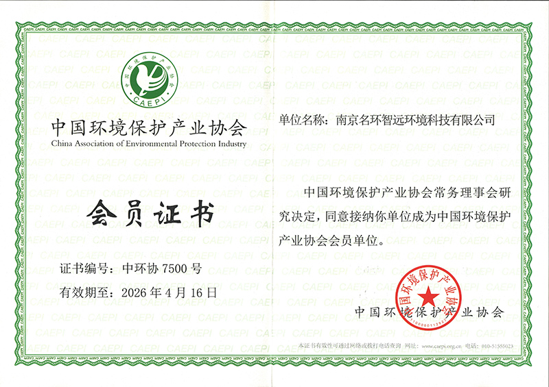 中國環(huán)境保護(hù)產(chǎn)業(yè)協(xié)會會員證書